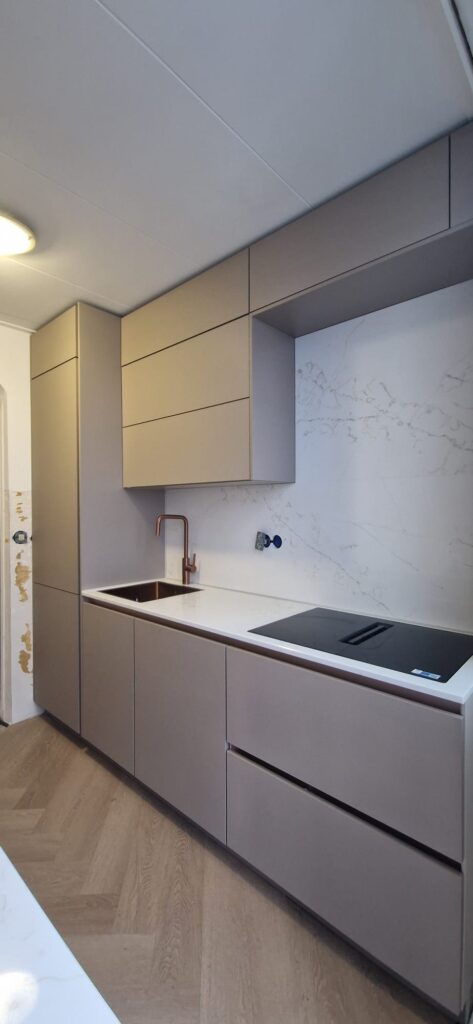 Voordat wij een beverwijk keuken ontwerpen, kijken wij naar de technische realiteit. In Beverwijk zien wij appartementen, tussenwoningen en oudere bouw met hun eigen beperkingen. Scheve muren, niet-haakse hoeken en vloeren die verlopen zijn geen uitzondering.